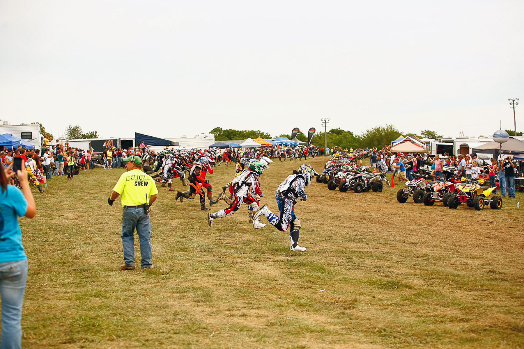 Riders run to their ATVs in the Le Mans style start.
